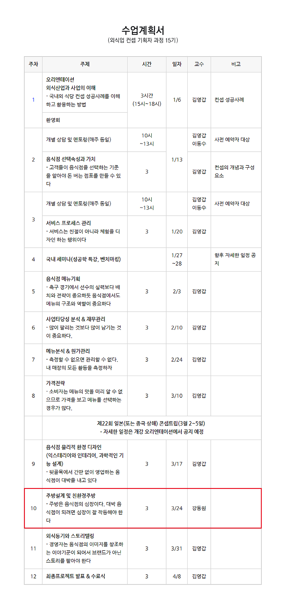 「외식업 컨셉 기획자 과정 15기 안내」