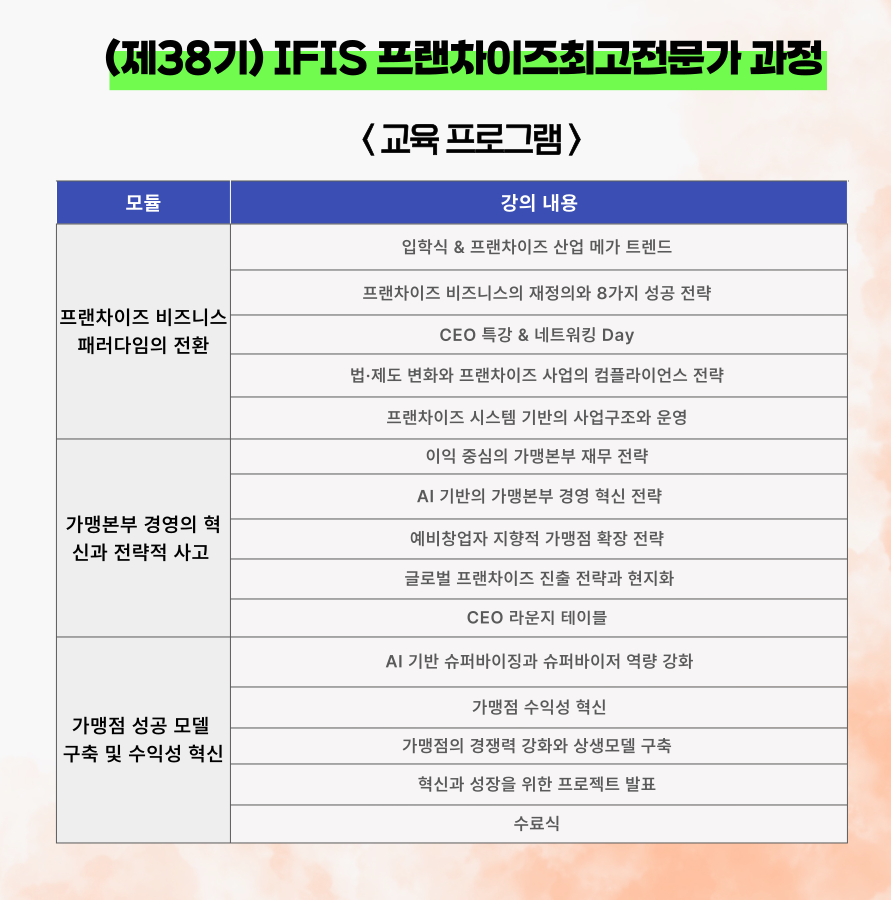 「제38기 IFIS 프랜차이즈최고전문가과정 모집 안내」