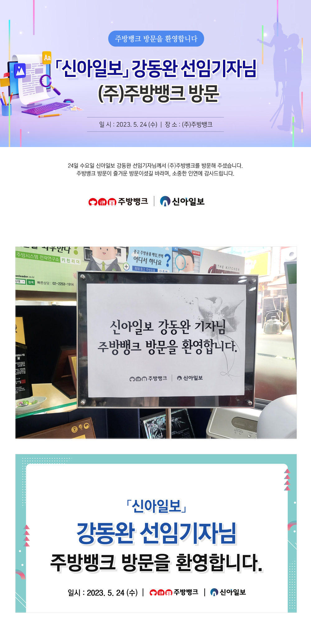 「신아일보」강동완 선임기자님 (주)주방뱅크 방문