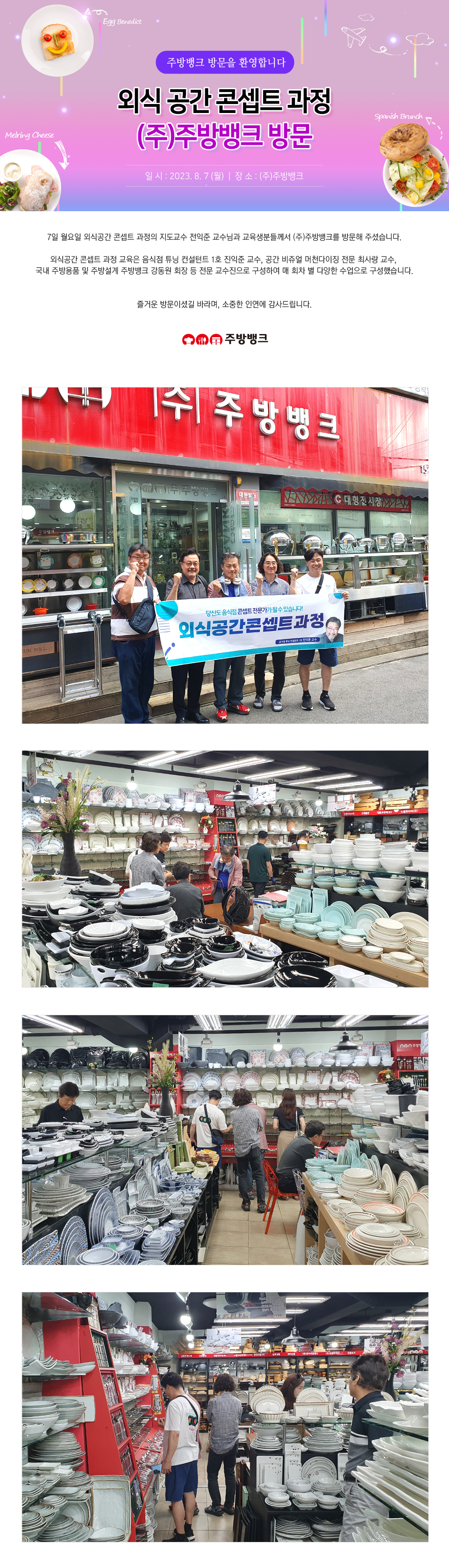 (사)한국외식산업학회 회장, 백석예술대학교 외식산업학부 임성빈 교수님 (주)주방뱅크 방문