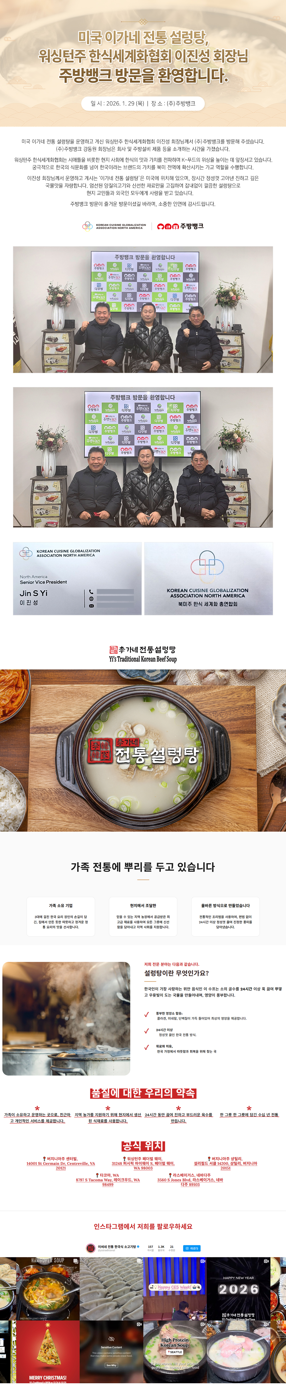 미국 이가네 설렁탕&워싱턴주 한식세계화협회 이진성 회장님 (주)주방뱅크 방문