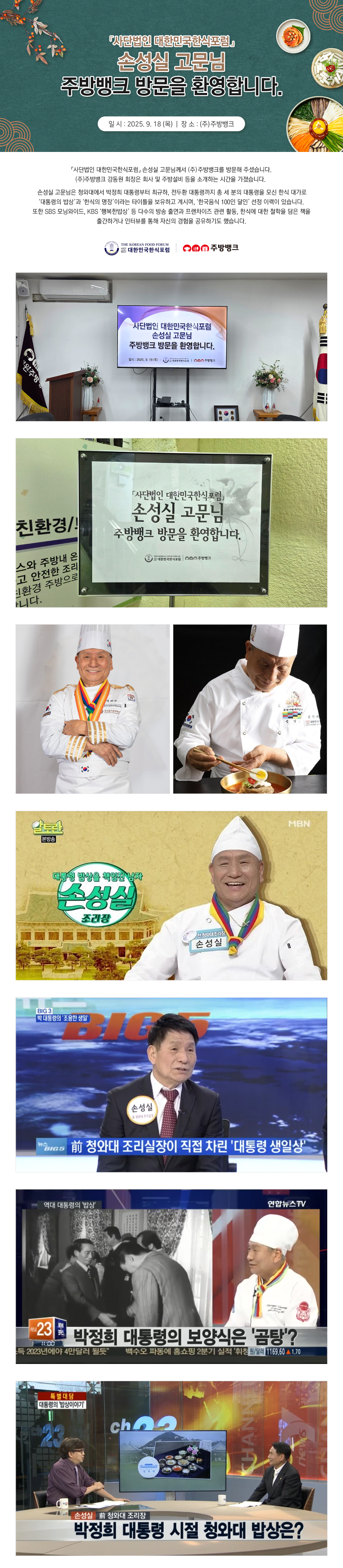 「사단법인 대한민국한식포럼」 손성실 고문님 (주)주방뱅크 방문