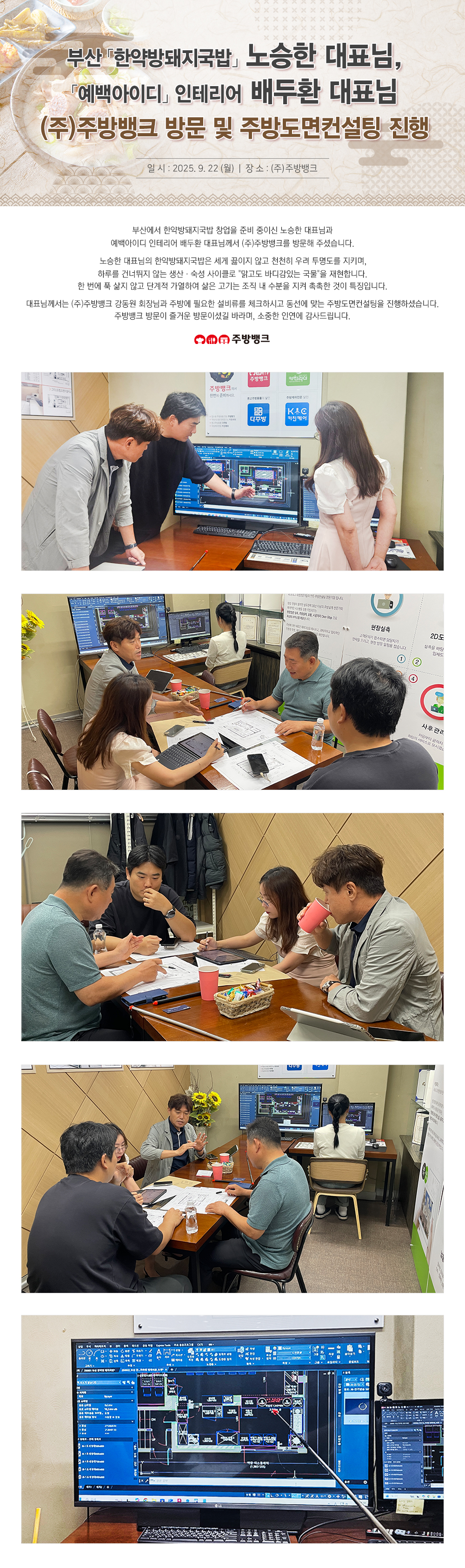 부산 「한약방돼지국밥」 노승한 대표님, 「예백아이디」 인테리어 배두환 대표님 방문 및 도면컨설팅