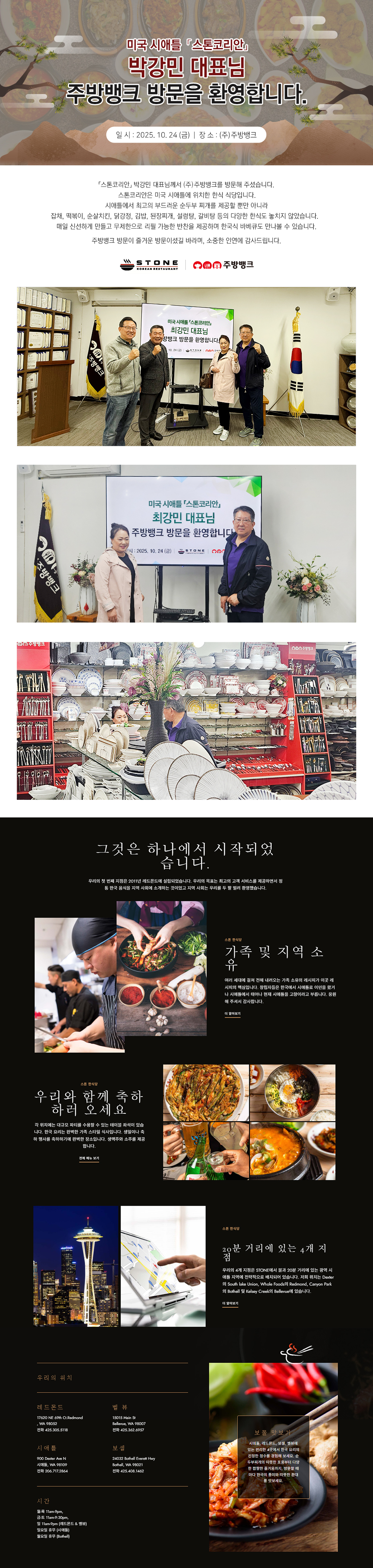 미국 시애틀 「스톤코리안」 박강민 대표님 (주)주방뱅크 방문