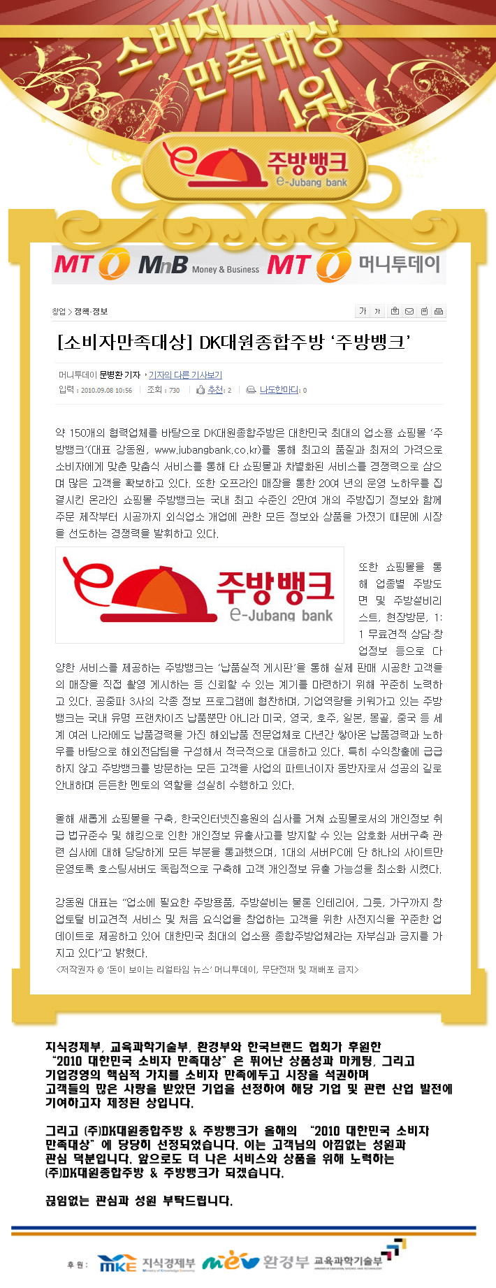 [머니투데이]소비자만족대상1위를 한 (주)DK대원종합주방