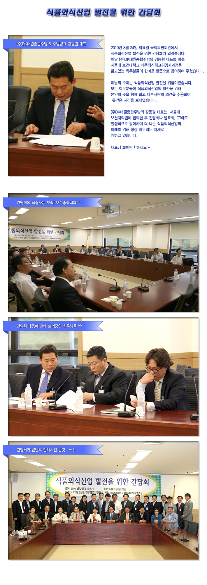 식품외식산업 발전을 위한 간담회에 (주)DK대원종합주방&주방뱅크 참여