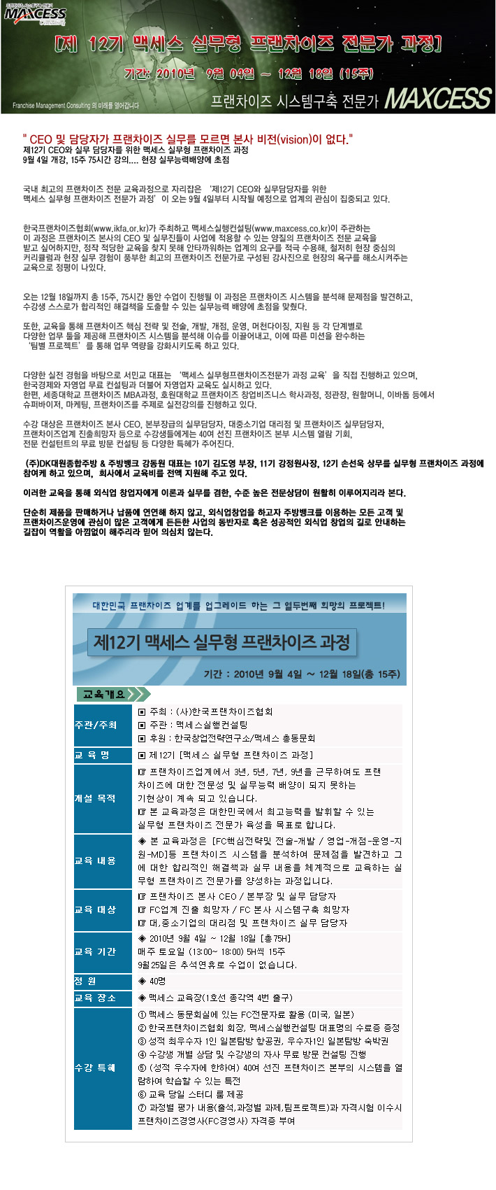 제 12기[ 맥세스 실무형 프랜차이즈 전문가 과정]손선욱 상무님 입학