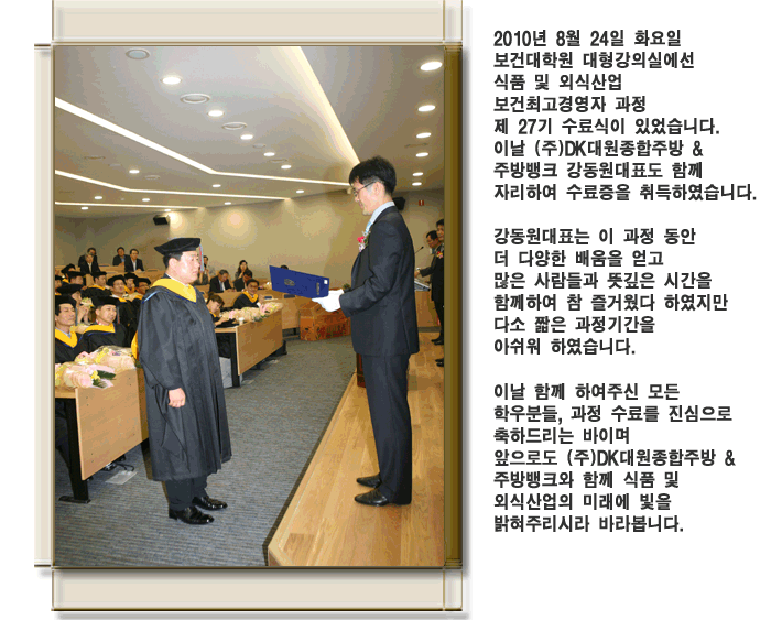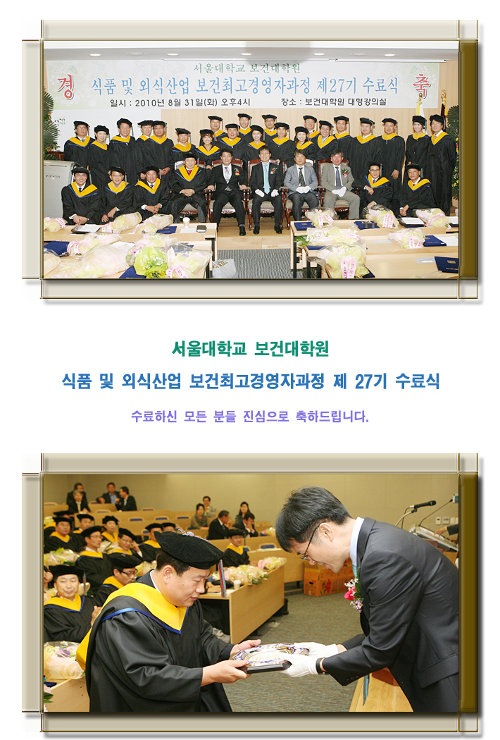 서울대학교 보건대학원 식품 및 외식산업 보건최고경영자 과정 제 27기 수료식