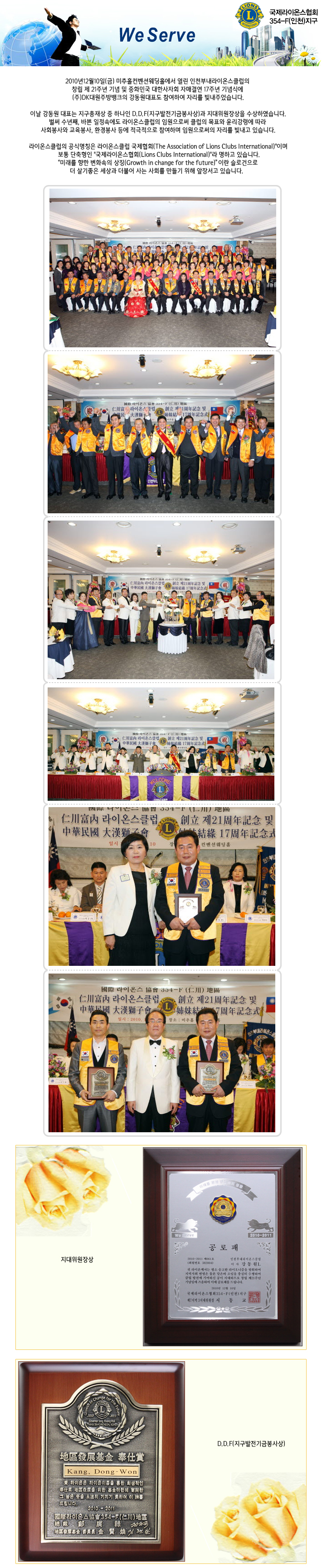 [인천부내 라이온스클럽] '지구발전기금봉사상' & '지대위원장상' 수상