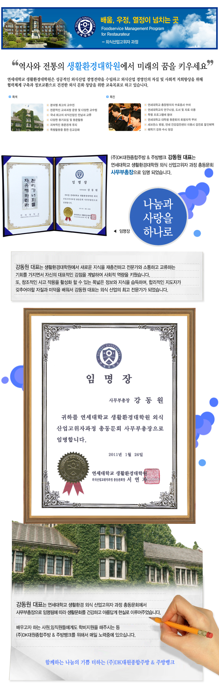 연세대학교 생활환경대학원 외식 산업고위자 과정 총동문회 사무부총장 임명