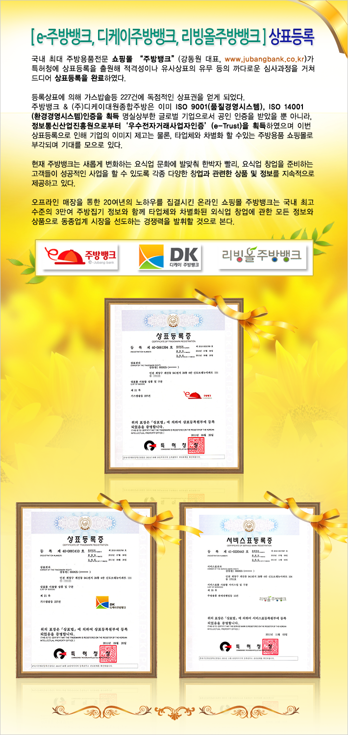 「 디케이주방뱅크, e-주방뱅크」 특허청 상표등록 완료