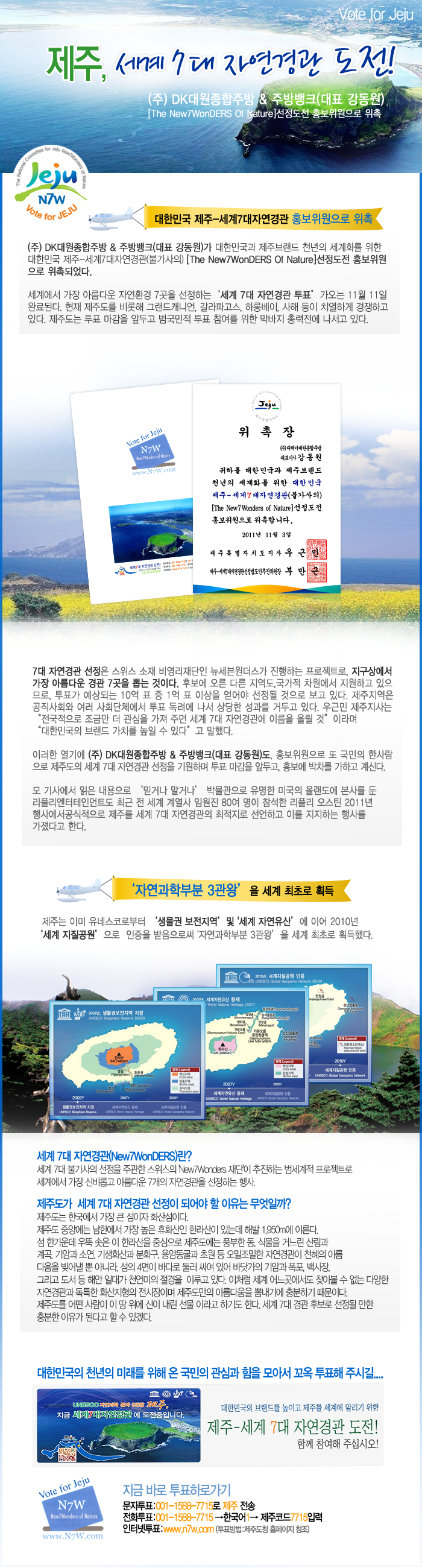 (주)DK대원종합주방&주방뱅크(대표 강동원) " 세계7대자연경관 선정도전 홍보위원" 위촉