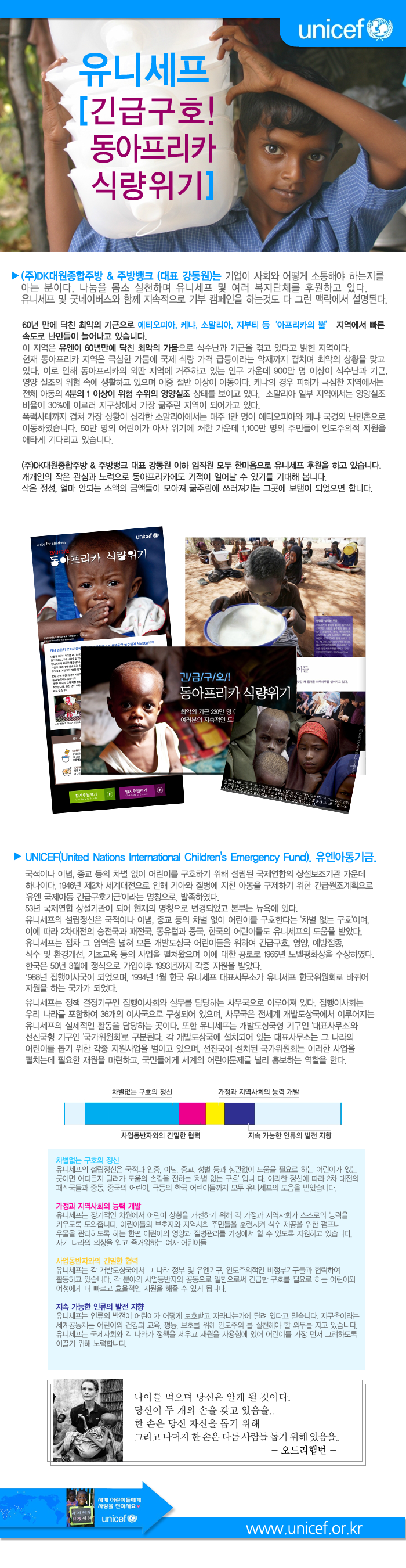 (주)DK대원종합주방&주방뱅크가 유니세프를 후원합니다.
