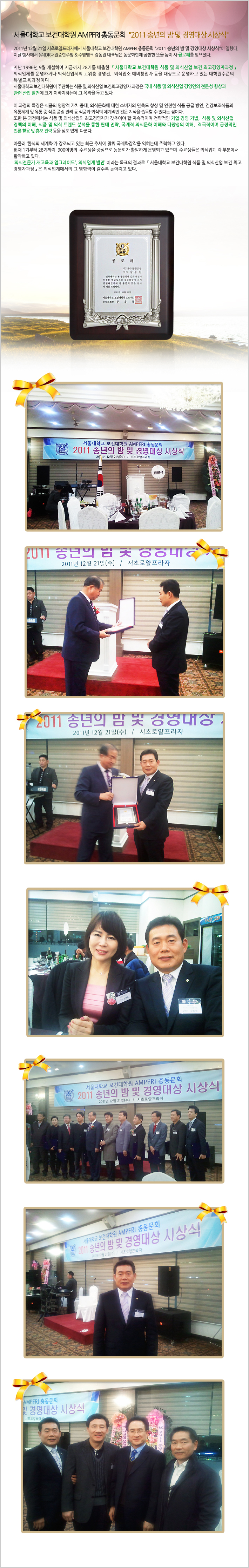 서울대 보건대학원 AMPFRI " 2011 송년의 밤 경영대상 시상식" 공로패 수상
