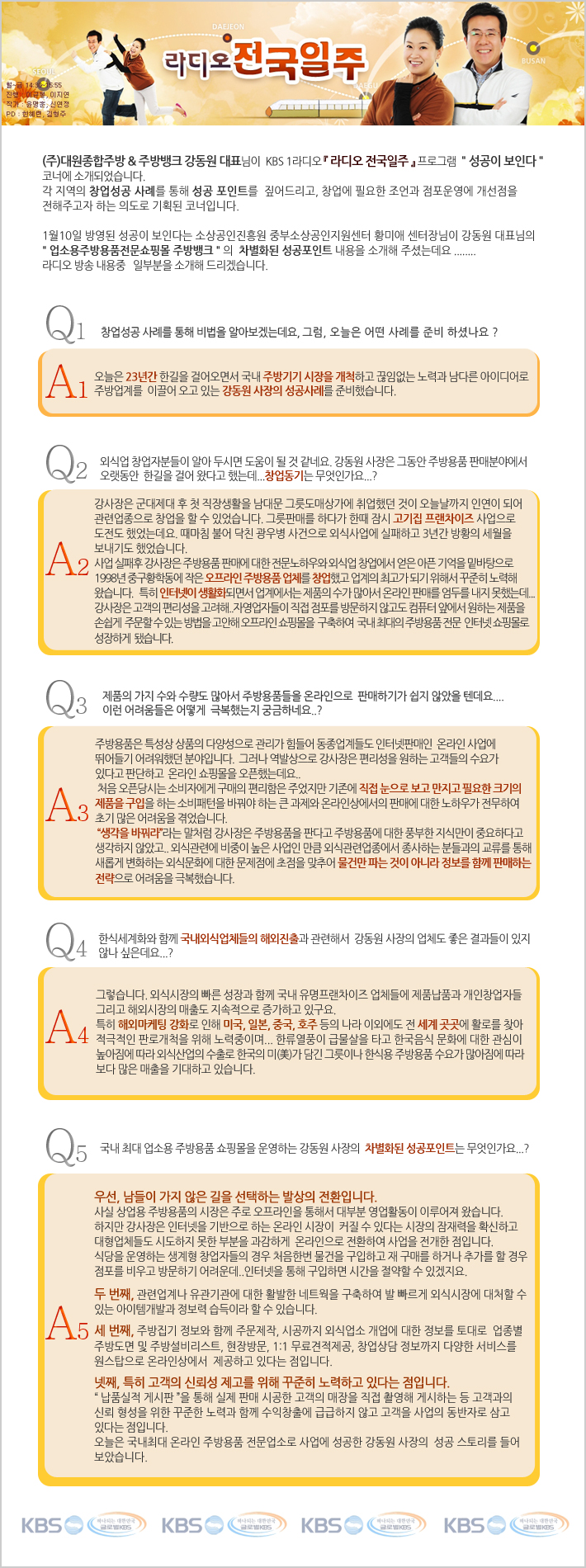 KBS 1 라디오 『라디오 전국일주- 성공이 보인다 』프로그램에 소개된 강동원 대표님