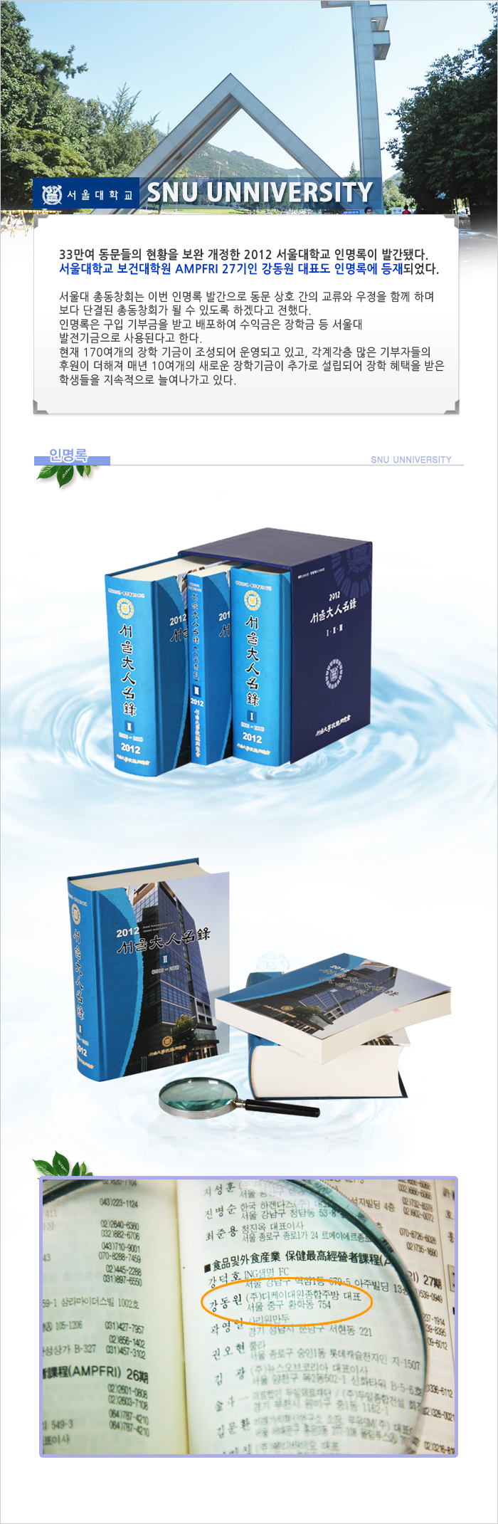 서울대학교 보건대학원 AMPFRI 인명록에 등재
