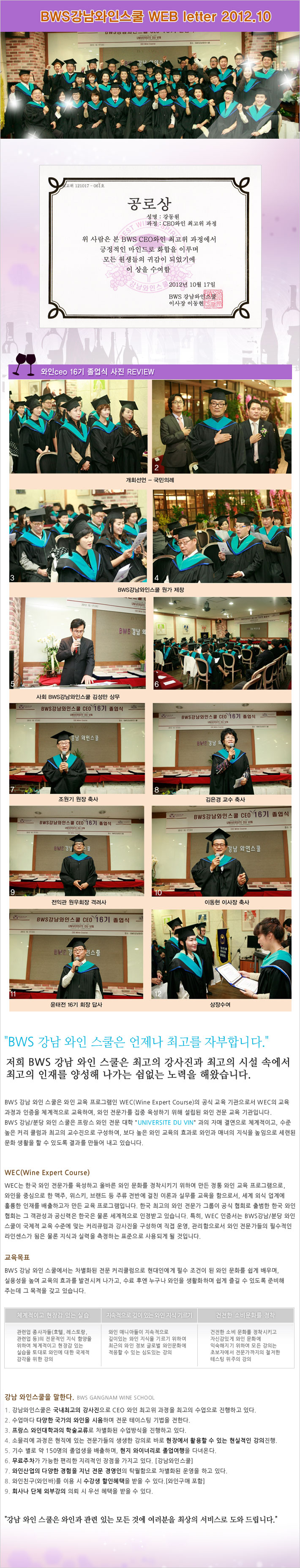 강남와인스쿨 '와인 CEO 16기 졸업식' 에서 공로상을 수상