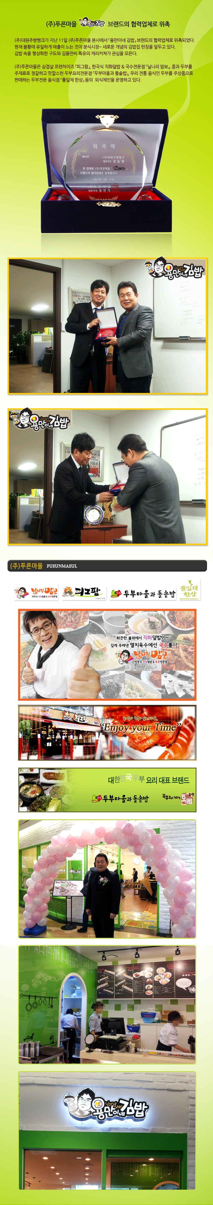 (주)푸른마을 「용만이네 김밥」브랜드의 협력업체로 위촉