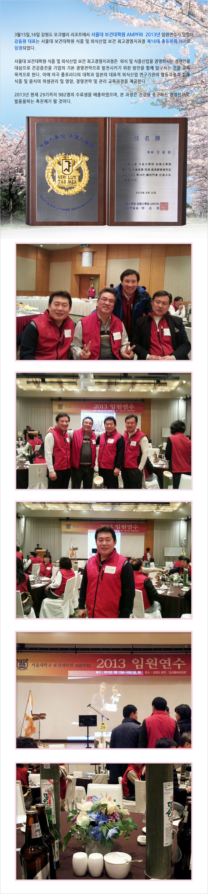 서울대 보건대학원 식품 및 외식산업 보건 최고경영자과정 제16대 총동문회 이사로 임명