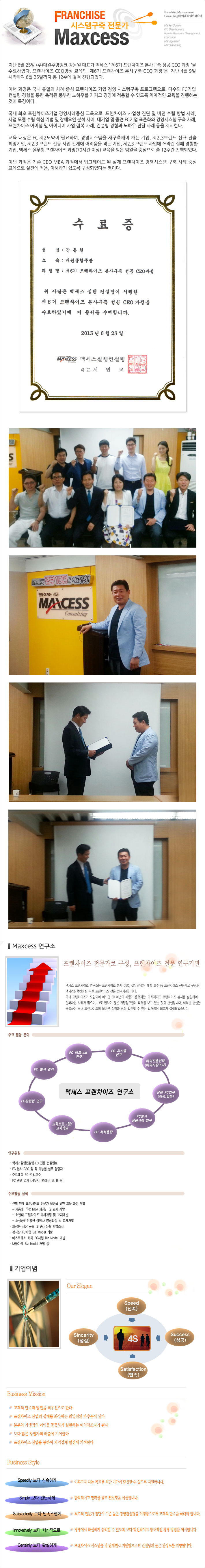 맥세스 ' 제6기 프랜차이즈 본사구축 성공 CEO 과정 '을 수료