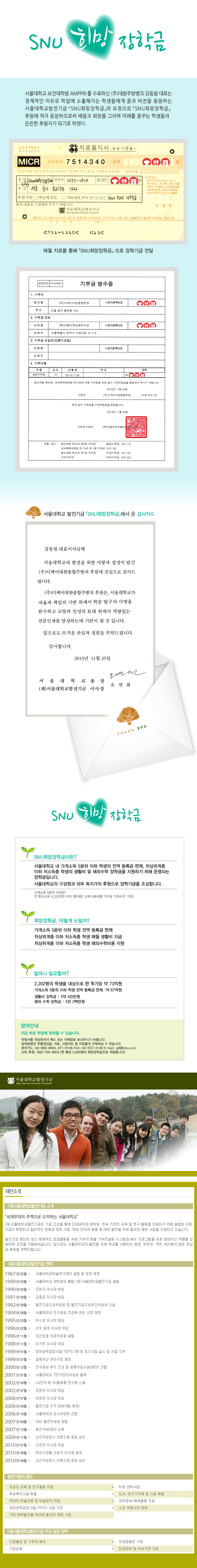 주방뱅크 서울대학교 『SNU 희망장학금』 후원