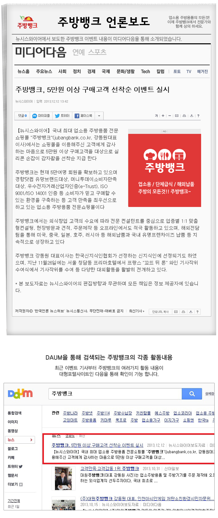 뉴시스와이어 에서 보도한 주방뱅크 이벤트 기사