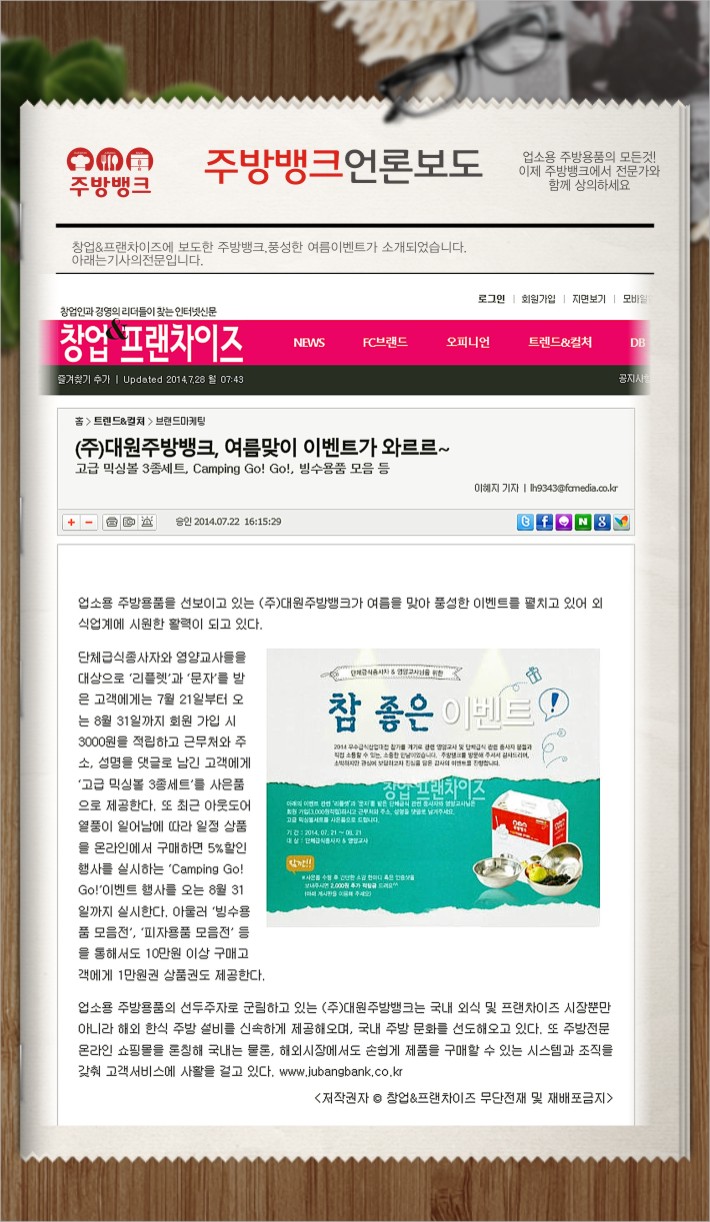 창업&프랜차이즈에 보도된 여름이벤트가 와르르~ (주)대원주방뱅크