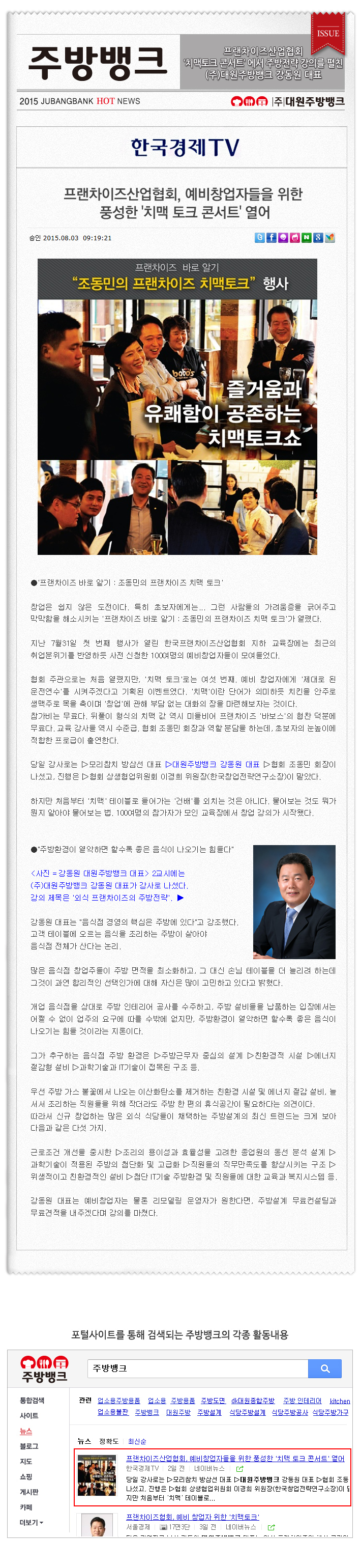 한국경제TV에 소개된 프랜차이즈산업협회 '치맥토크콘서트' 에서 주방전략 강의