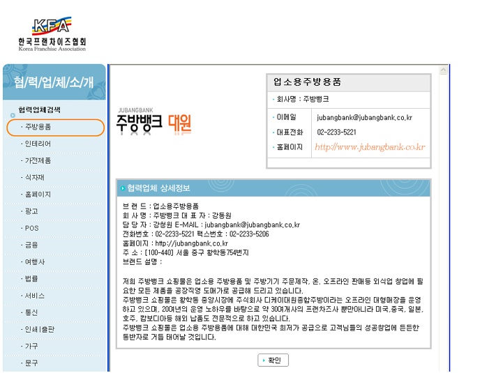 [한국프랜차이즈협회 협력업체등록] 주방뱅크가 한국프랜차이즈협회 협력업체로 등록되었습니다.