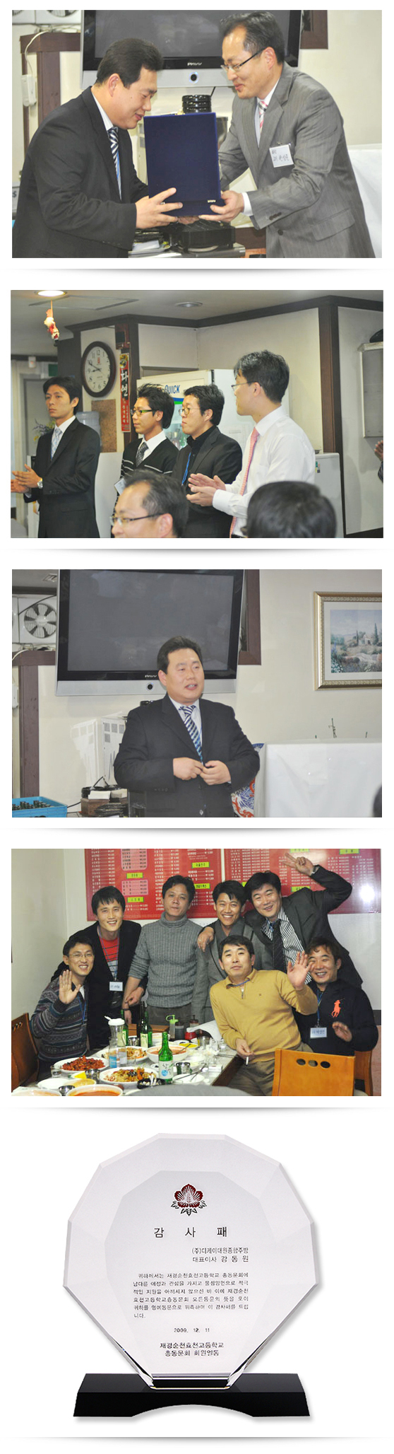 (주)디케이대원종합주방 강동원대표이사는 2009년 12월 11일 재경순천효천고등학교 정기총회 및 송년회에서 총동문회로부터 명예회원 위촉과 감사패를 수여하였다. 그 동안 강동원대표이사는 재경순천효천고동문회 발전을 위해 남다른 애정과 관심을 가지고 물심양면으로 적극적인 지원을 아끼지 않았다. 강동원대표이사는 앞으로도 고향 선후배로 구성된 재경효천고 명예동문으로, 총동문회에서 주도적인 역할과 후원을 할 것임을 밝혔다.