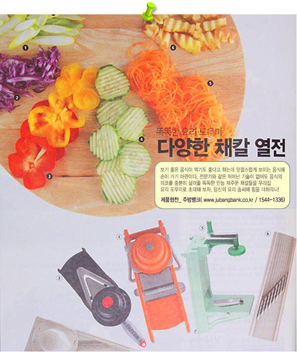 무,당근 등 채소를 끼워 놓고 손잡이를 회전시키면서 채를 써는 회전채칼~