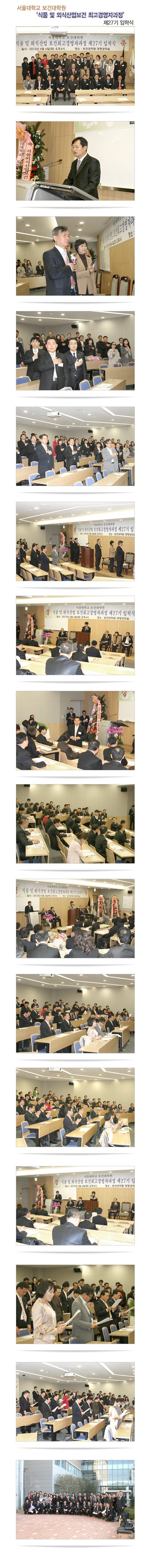 서울 보건대학원 27기 입학식 및 입학 오리엔테이션이 4월 6일 (화) 오후 4시 보건대학원 1층 세미나실에서 개최되었습니다. 정해원 원장, 정효지 부원장의 축사로 시작된 입학식에는 20 여명의 동문분들이 참석하시어 입학생분들에게 축하를 보내셨습니다. 이날 (주)DK대원종합주방 강동원 대표이사도 서울대학교 보건대학원의 학생으로써 입학식에 참가하셨습니다.