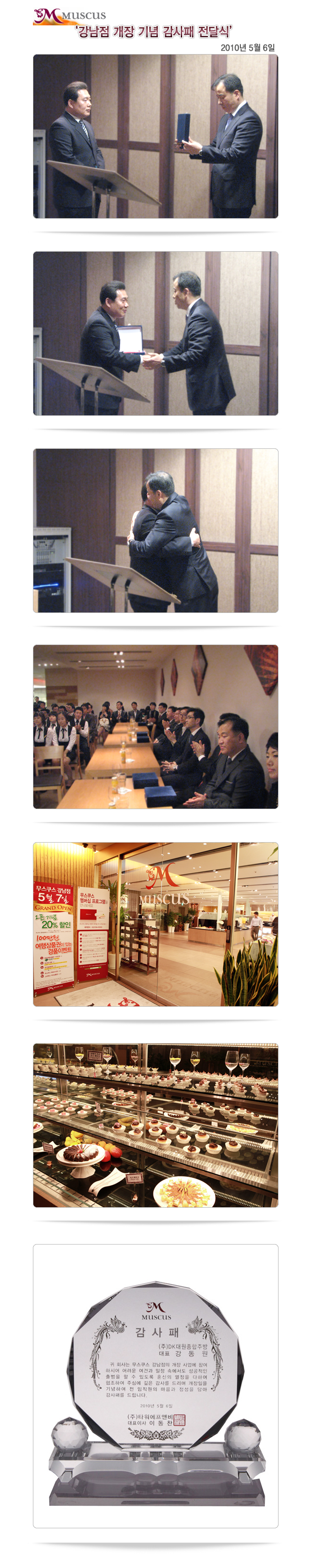 | 제목 | 무스쿠스 강남점 개장사업참여 감사패 전달 | ||