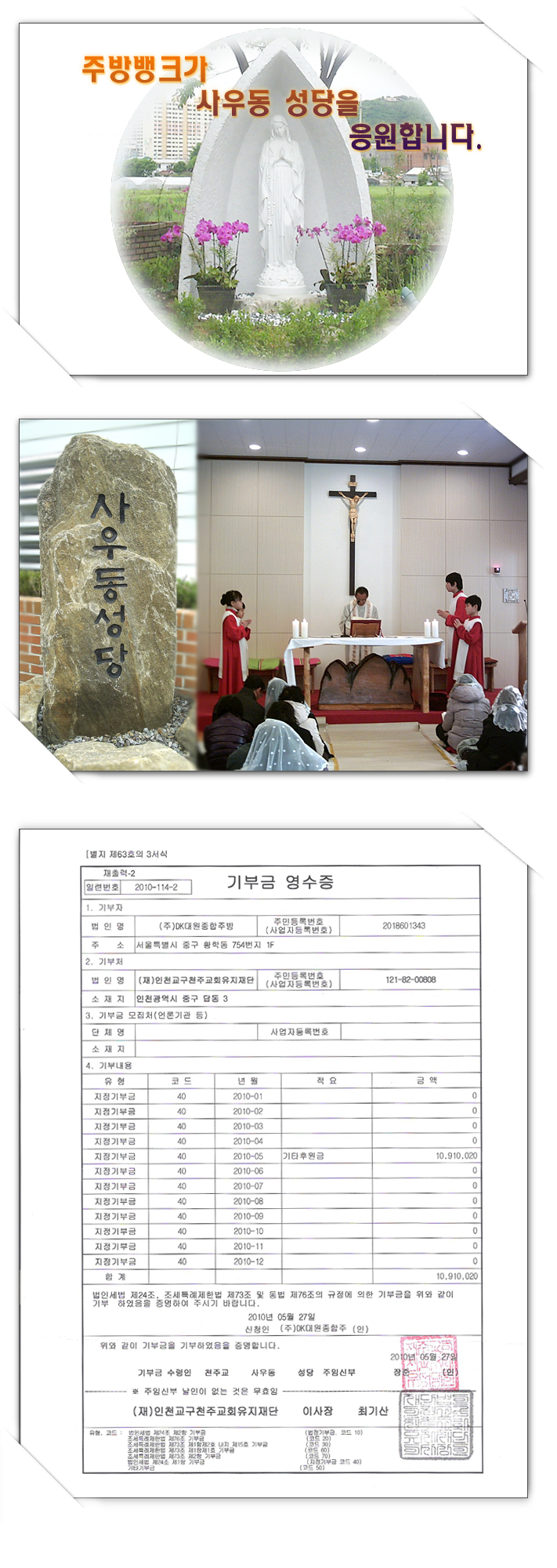 하느님의 집에 (주)DK대원종합주방 도 한 줄기 빛이 될 수 있도록 기부를 하였습니다.