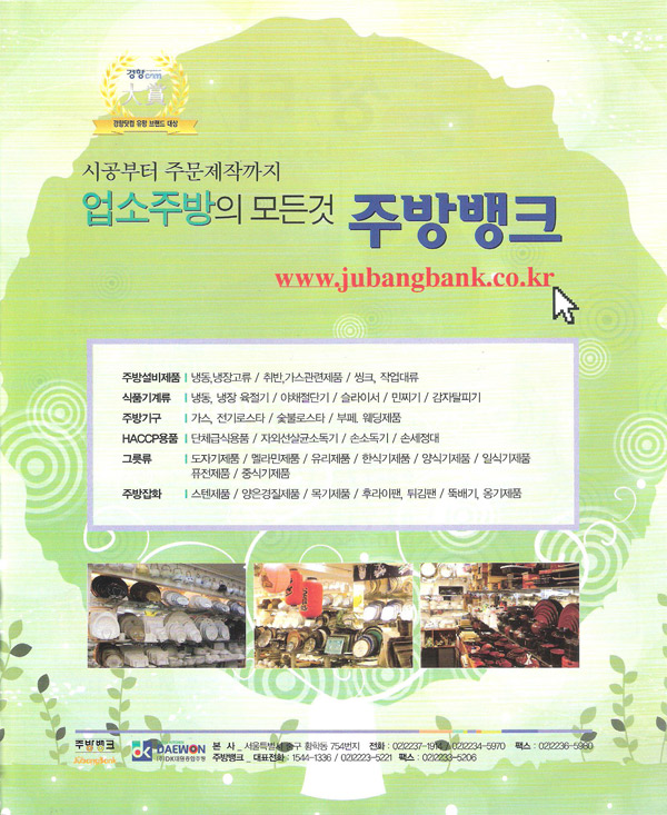 '주방뱅크(www.jubangbank.co.kr)'는 시공부터 주문제작까지 설비제품 및 주방기구와 주방용품, 그릇제품등