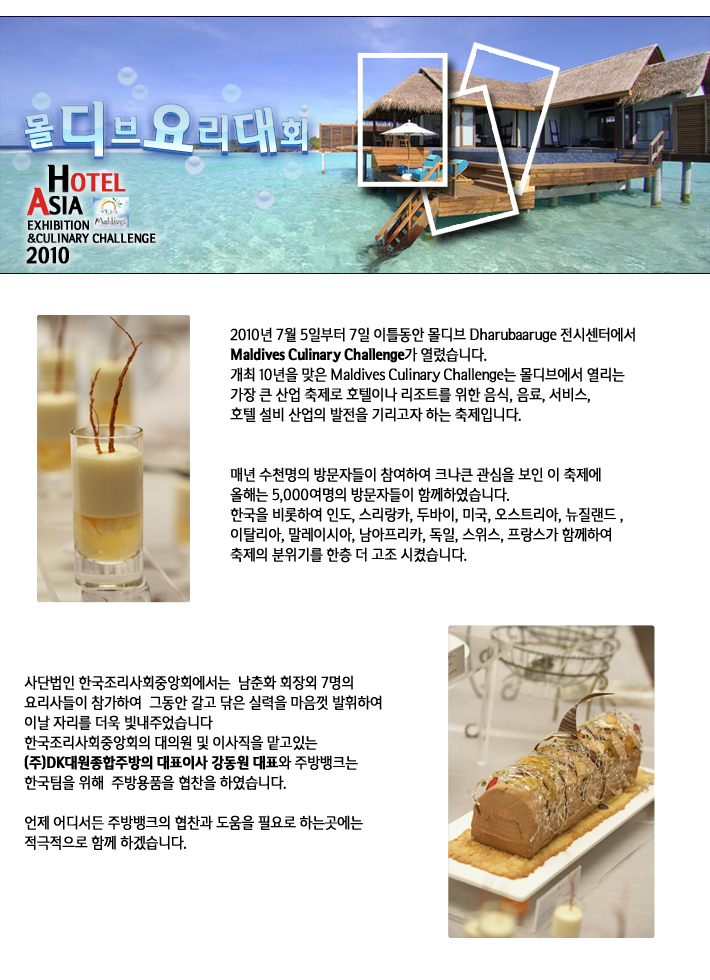 제 6회 몰디브 요리대회에 참가한 한국팀을 위해 주방용품을 협찬한 주방뱅크