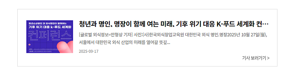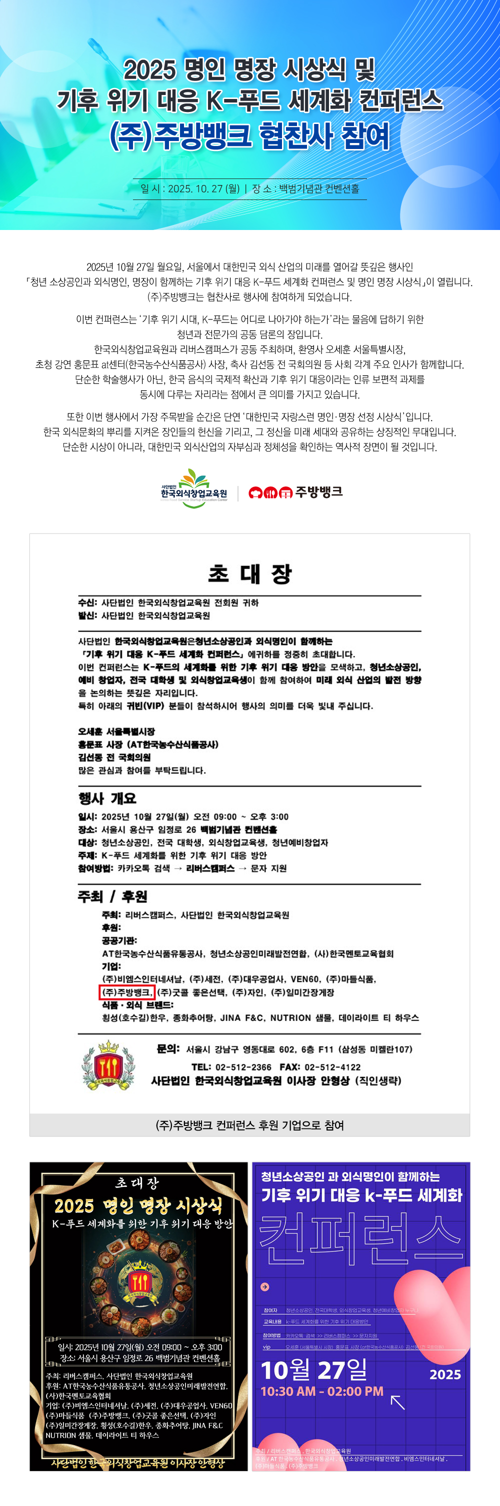 2025 명인 명장 시상식 및 기후 위기 대응 K-푸드 세계화 컨퍼런스 (주)주방뱅크 협찬사 참여