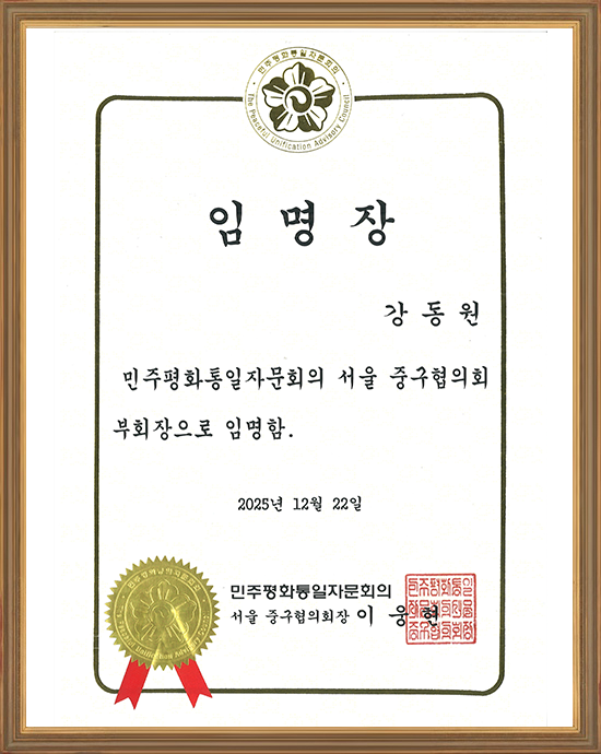 이웅현, 강동원 회장 중구협의회 부회장 임명