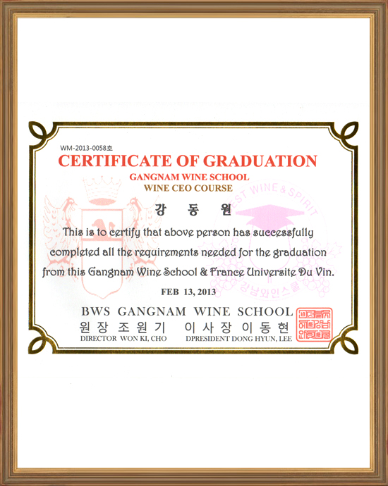 강남구/중앙대학교 외식산업 최고경영자과정 이수 증서