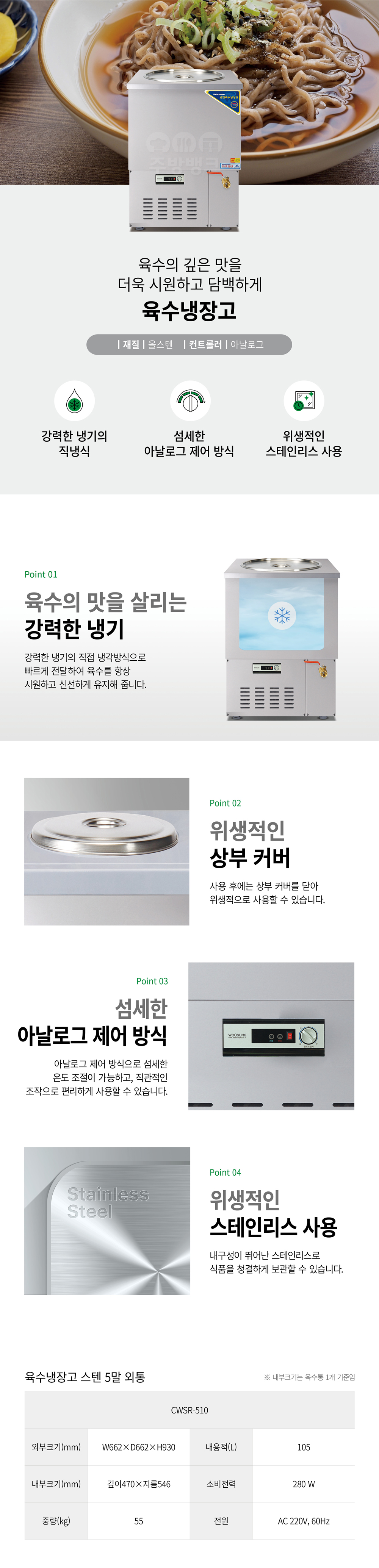 | 상품명 | 스텐 5말 외통 육수냉장고(CWSR-510) |