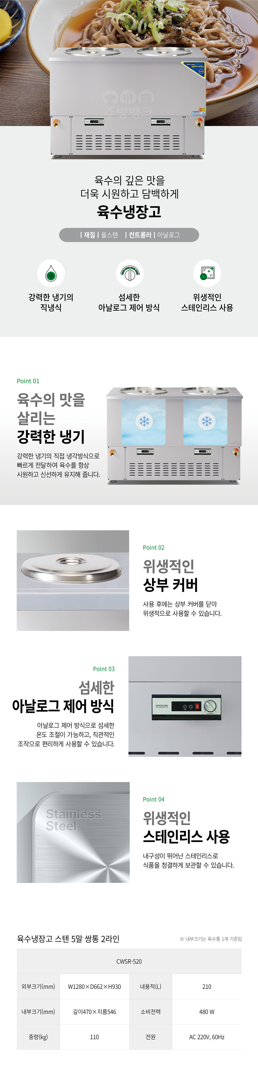 | 상품명 | 스텐 5말 쌍통 2라인 육수냉장고(CWSR-520) |