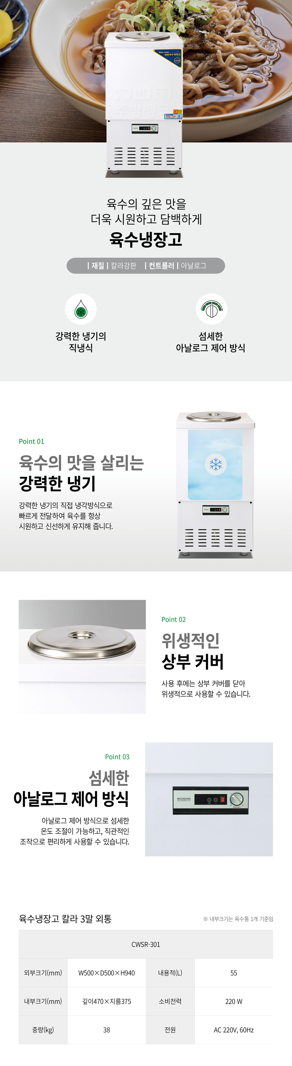 | 상품명 | 칼라 3말 외통 육수냉장고(CWSR-301) |