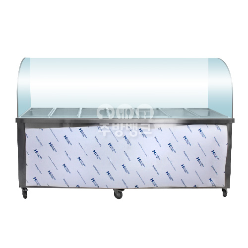 | 특징 | 건식용 직접배식을 위한 배식대. 타공판을 통해 밧드에 열기를 전달하여 음식의 온기를 유지함. 바퀴는 우레탄 병원용 바퀴를 사용. 유리가 고정되어 있음. |