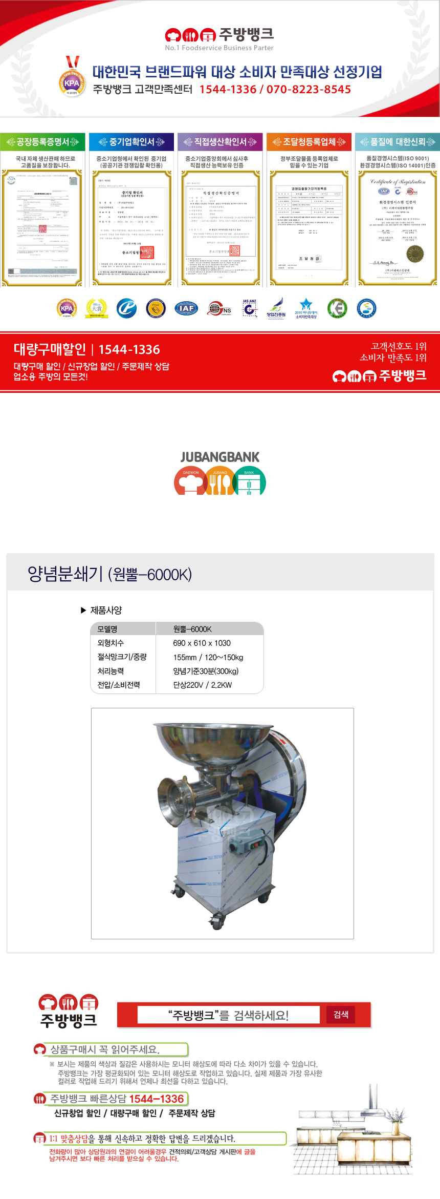 2) 구매자 사정으로 교환이나 환불을 할 경우 왕복 배송료는 구매자 부담이며, 상품에 하자 및 오배송이 된 경우에는 왕복배송료를 주방뱅크에서 부담합니다.