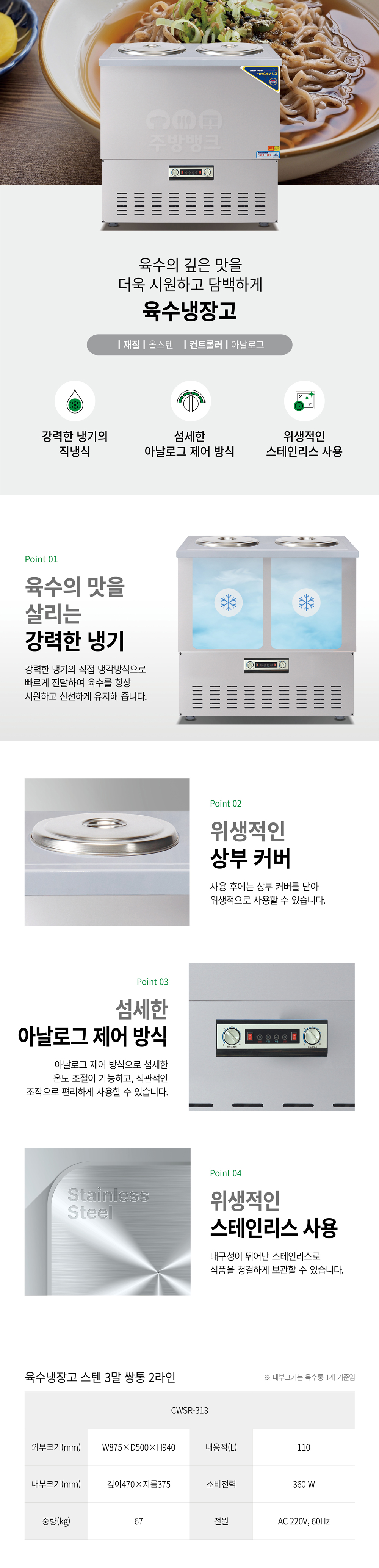 | 상품명 | 스텐 3말 쌍통 2라인 육수냉장고(CWSR-313) |