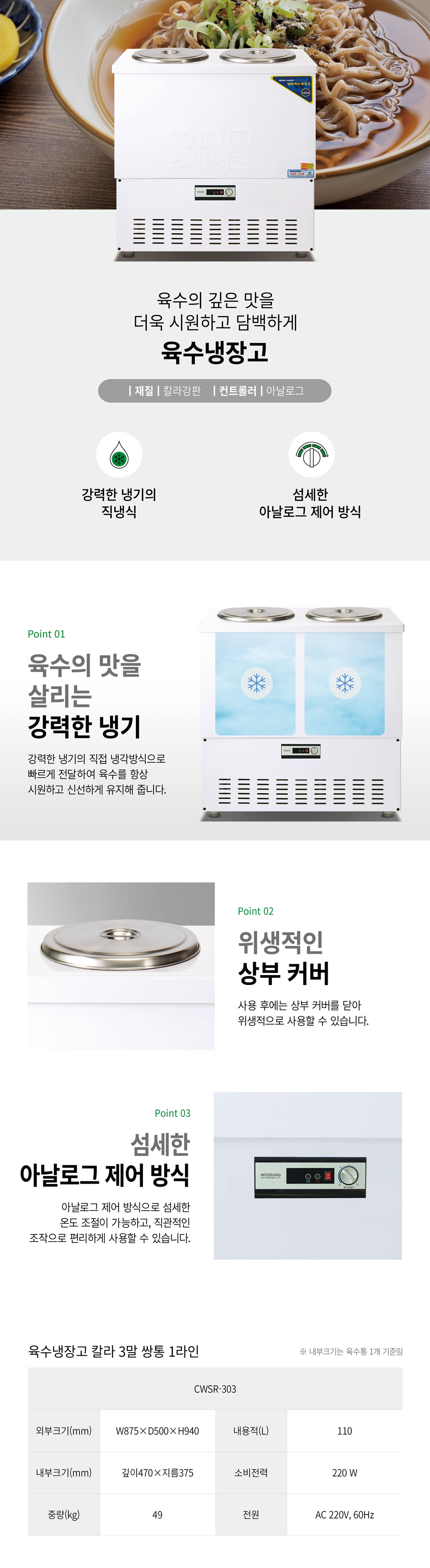| 상품명 | 칼라 3말 쌍통 1라인 육수냉장고(CWSR-303) |