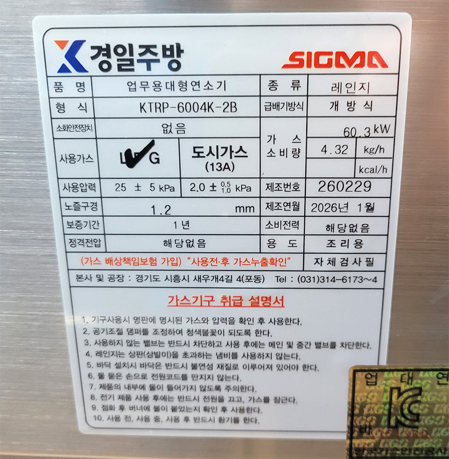 | 상품명 | [재고] 시그마 가스렌지 1800 LPG |