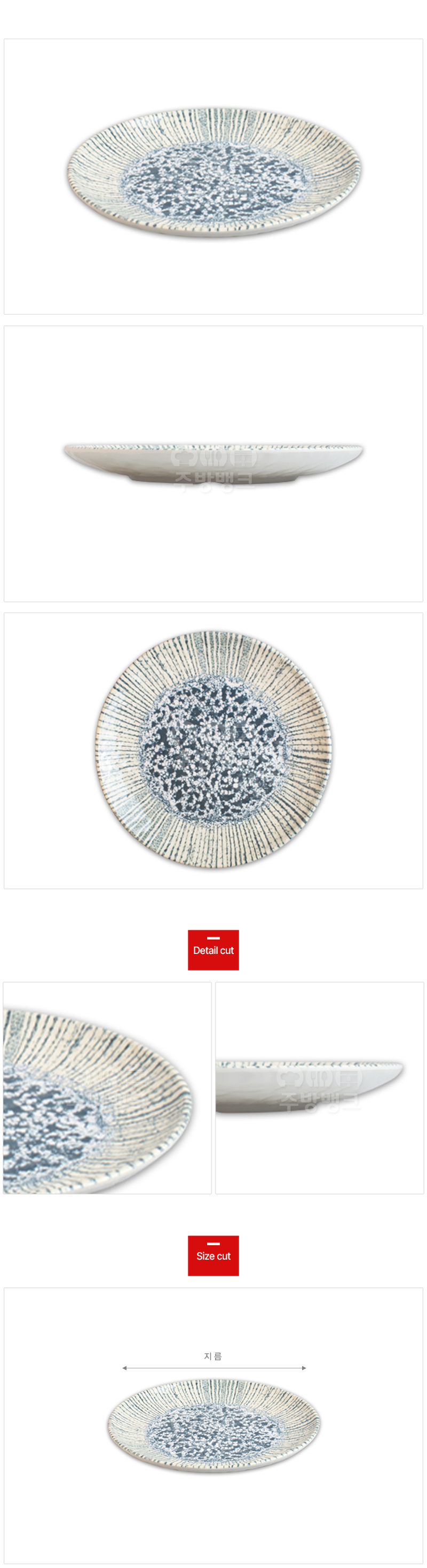 | 사이즈 | 지름(cm) (DS-6650) 산호 원형접시 7인치 : 17.6cm (DS-6651) 산호 원형접시 8인치 : 20.2cm (DS-6652) 산호 원형접시 9인치 : 23cm (DS-6653) 산호 원형접시 10인치 : 26cm (DS-6654) 산호 원형접시 11인치 : 27.6cm (DS-6655) 산호 원형접시 12인치 : 29.5cm (DS-6656) 산호 원형접시 13인치 : 32.1cm (DS-6657) 산호 원형접시 14인치 : 34.4cm |