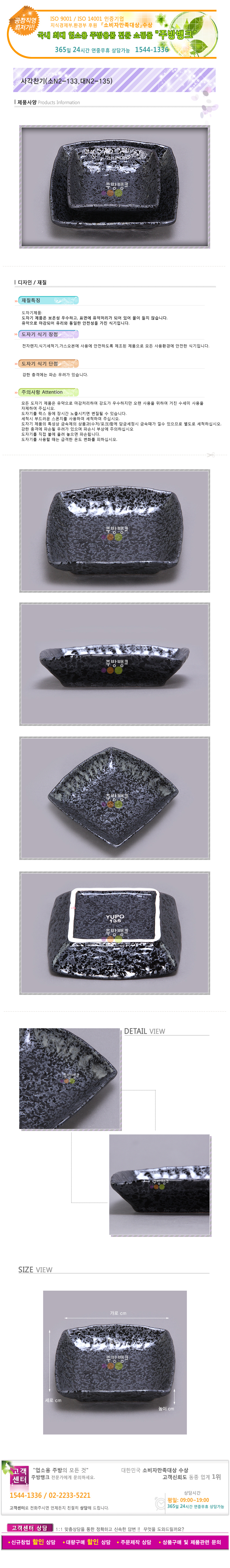 2) 구매자 사정으로 교환이나 환불을 할 경우 왕복 배송료는 구매자 부담이며, 상품에 하자 및 오배송이 된 경우에는 왕복배송료를 주방뱅크에서 부담합니다.