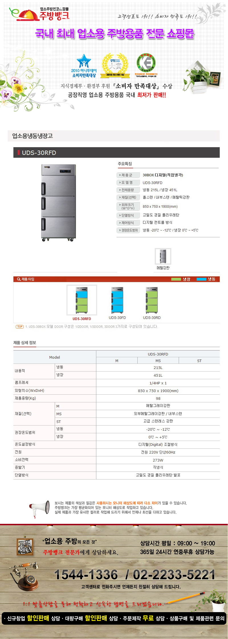 제품사양 UDS-30RFDR(냉장,냉동전용)